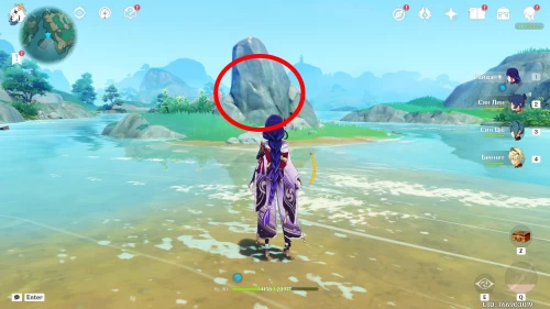 Поверните камеру налево и пройдите на островок с большим валуном, который исчезнет, как только вы приблизитесь к нему. На его месте возникнет меч – осмотрите его. Затем расправьтесь с вылезшим из-под земли Геовишапом (не советуем использовать физических и Гео дамагеров).