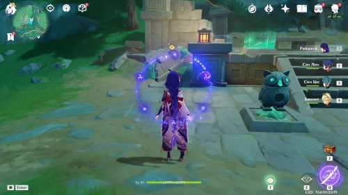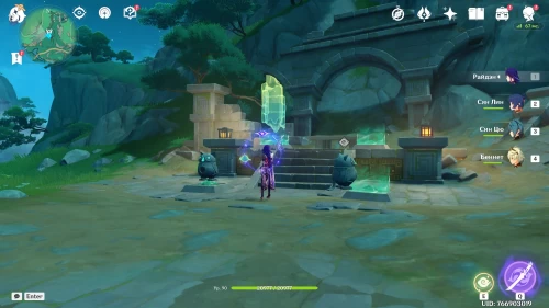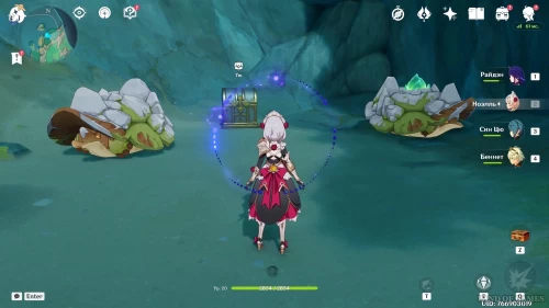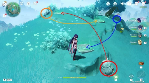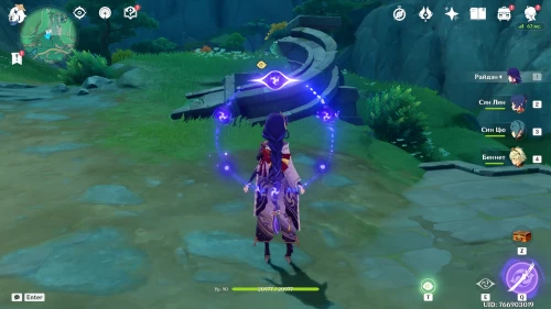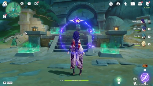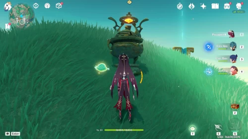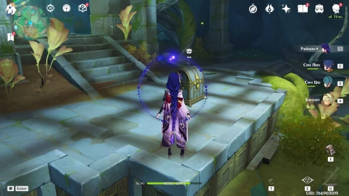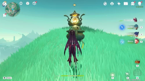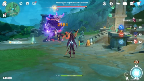 Как только вы закончите с восстановлением руин, на вас нападет группа хиличурлов. В конце придется драться с лавачурлом с громовым шлемом. Используйте против него Крио, Пиро или Гидро дамагеров, чтобы быстренько разрушить его щит. Как только вы победите врагов, на пьедестале появится роскошный сундучок.