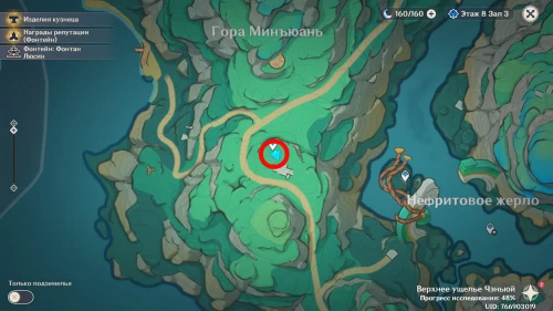 Телепортируйтесь к путевой точке на юге горы Минъюань, а затем сделайте еще несколько шагов в южном направлении, и вы обнаружите внизу развалины, которые вам предстоит восстановить.