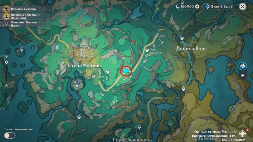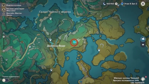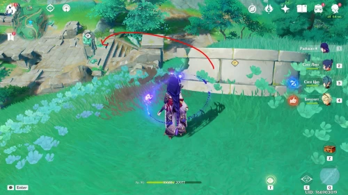 Переместитесь к телепорту в долине Яоде, а затем поднимитесь на восточное плато, воспользовавшись водяной жемчужиной. Продолжайте бежать на восток, поднимаясь по склону, пока не дойдете до развалин, показанных на картинках ниже.