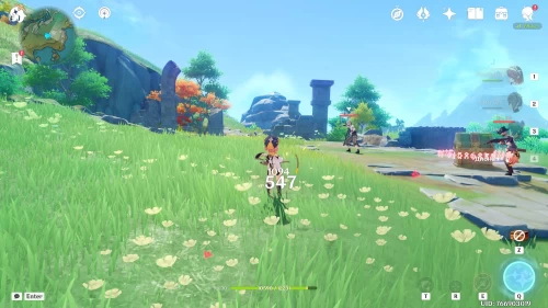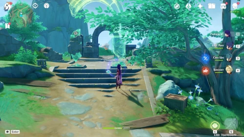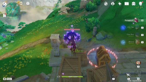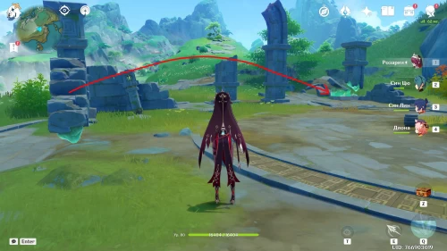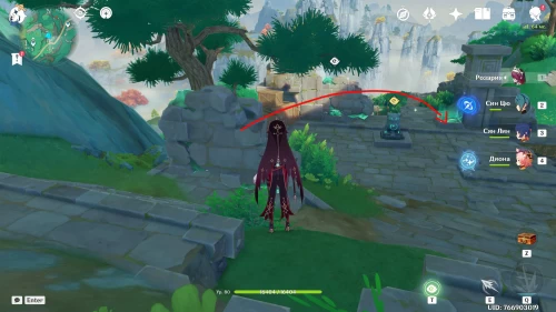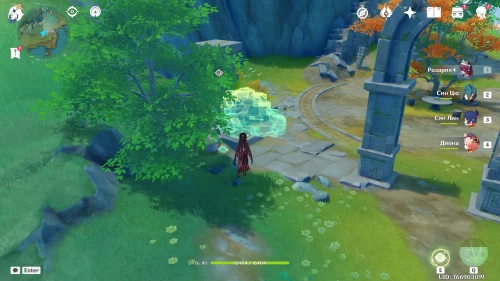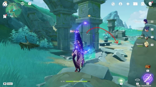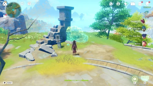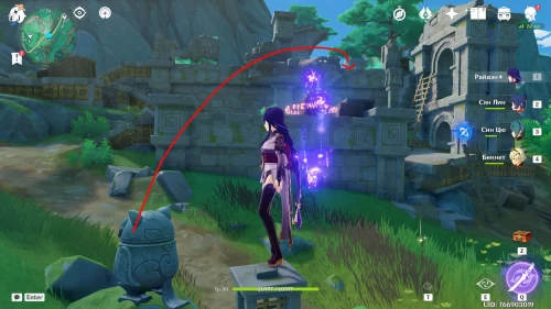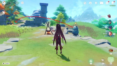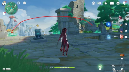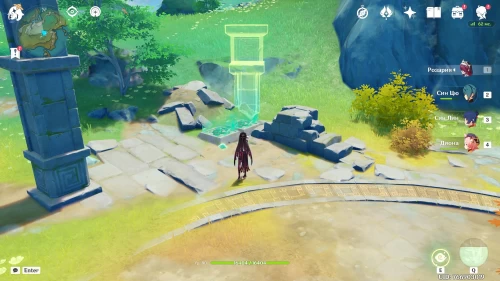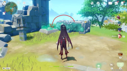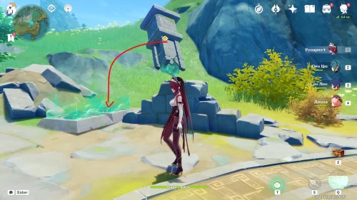 Поднимитесь на северный холм, разберитесь с парочкой хиличурлов, и возьмите полуразрушенную каменную арку. Вам нужно будет установить ее на квадратной площадке слева от колонны, которую вы разместили ранее.