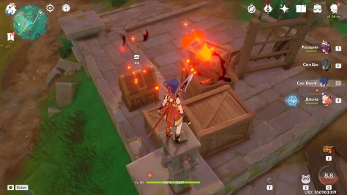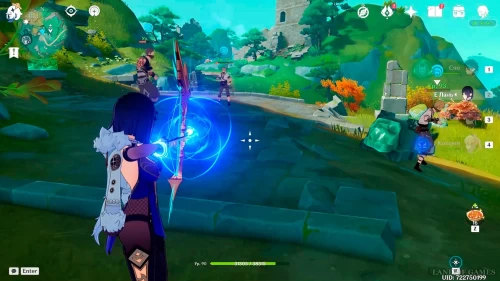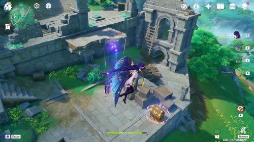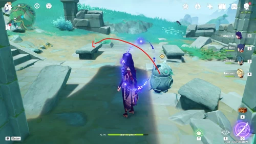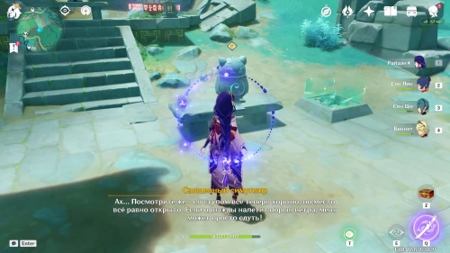 Как только вы закончите с восстановлением руин, на вас нападет группа хиличурлов. В конце придется драться с лавачурлом с громовым шлемом. Используйте против него Крио, Пиро или Гидро дамагеров, чтобы быстренько разрушить его щит. Как только вы победите врагов, на пьедестале появится роскошный сундучок.