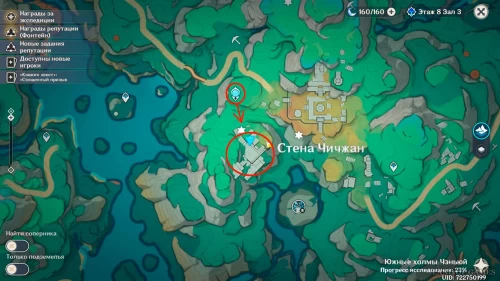 Телепортируйтесь на Стену Чичжан, а затем двигайтесь на восток к развалинам с заблокированным драгоценным сундуком.