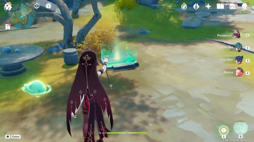 После этого появится лавачурл с громовым шлемом и несколько хиличурлов. Разбираться со всеми врагами необязательно, так как примерно через минуту рядом с сундуком появится водяная жемчужина – притянитесь к ней для моментального уничтожения всех оставшихся противников и разблокировки сундучка.
