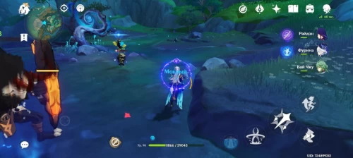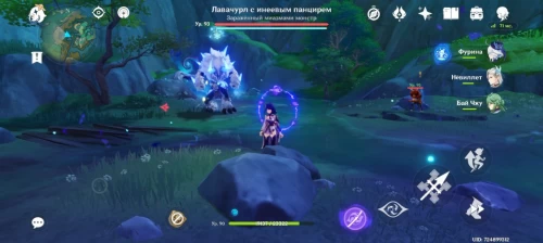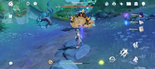 - В первой вожаком будет большой Гидро слайм. Вместе с ним будет множество маленьких Крио слаймов, поэтому советуем атаковать издалека, чтобы не подвергаться Заморозке. Источник миазмов после победы над слаймом будет находиться у небольшого деревца в восточной части области.