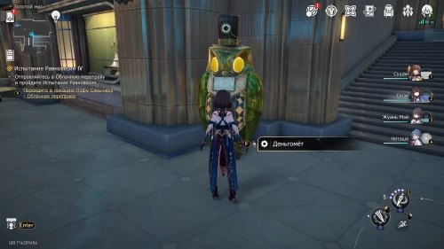 Взаимодействуйте с любым интерактивным деньгометом на территории Золотого мига. Один из таких банкоматов показан на скриншотах ниже.