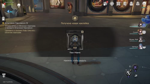 Чтобы добыть наклейку, завершите миссию «Заводной механизм: Уиспер». Найти девушку можно у западного телепорта в отеле в Мире грез. Для начала задания вставьте в ее эмоциферблат шестеренку «Гнев».
