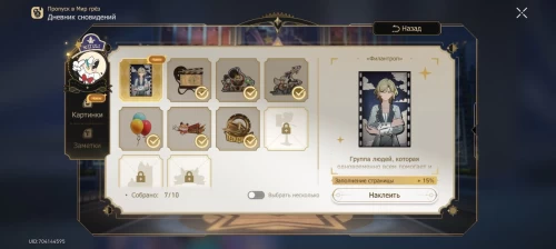Набор содержит 14 наклеек. Некоторые из них попадут в вашу коллекцию при прохождении основного сюжета, другие же связаны с секретными достижениями и механикой Заводного механизма. Заполнив страницу на 100%, вы получите 20 Звездных нефритов.