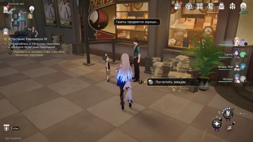Переместитесь к якорю «Торговый центр Оти» на востоке локации (все еще второй этаж), а затем пройдите на север, поднявшись по лестнице. Подойдите к двум газетчикам (редактору и журналисту) и поглотите их эмоции.