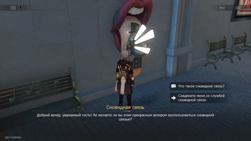 Телепортируйтесь к якорю «Площадь Часика» на первом этаже локации и спуститесь на юг по лестнице. Слева вы обнаружите таксофон – взаимодействуйте с ним, а потом попросите соединить вас со сновидной связью, заплатив 1000 кредитов. В итоге вы получите шестеренку. Вам также могут выдать наклейку «Звуки хаоса», если вы впервые используете сновидную связь.