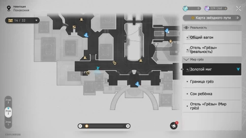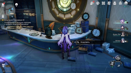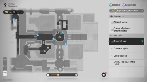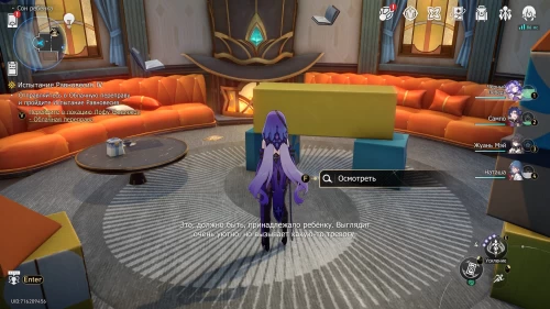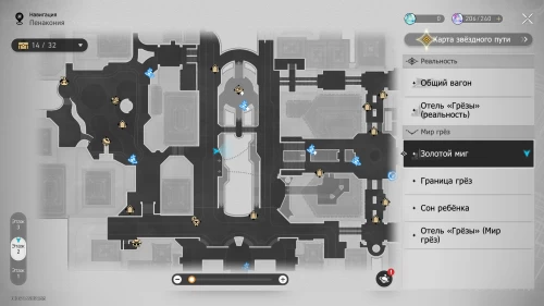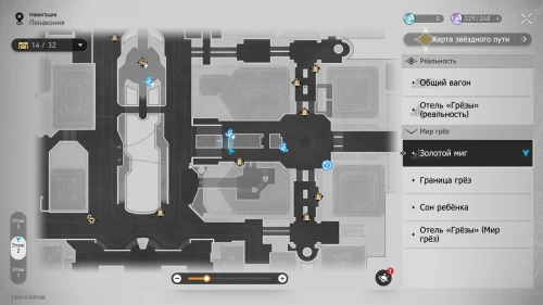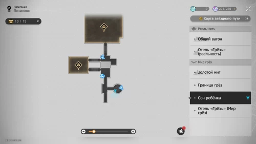 Отправляйтесь к якорю «Коридор воспоминаний» на севере локации и войдите в детскую комнату слева. Рядом с ходиками Мира грез нажмите кнопку «Осмотреть», чтобы получить наклейку и новую деталь.