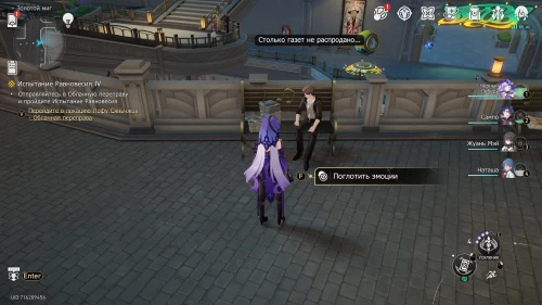 Переместитесь к «Торговому центру Оти» и пройдите на север до самого конца, поднявшись по лестнице. Рядом с деньгометом послушайте беседу между мужчиной и женщиной, чтобы поглотить их эмоции.