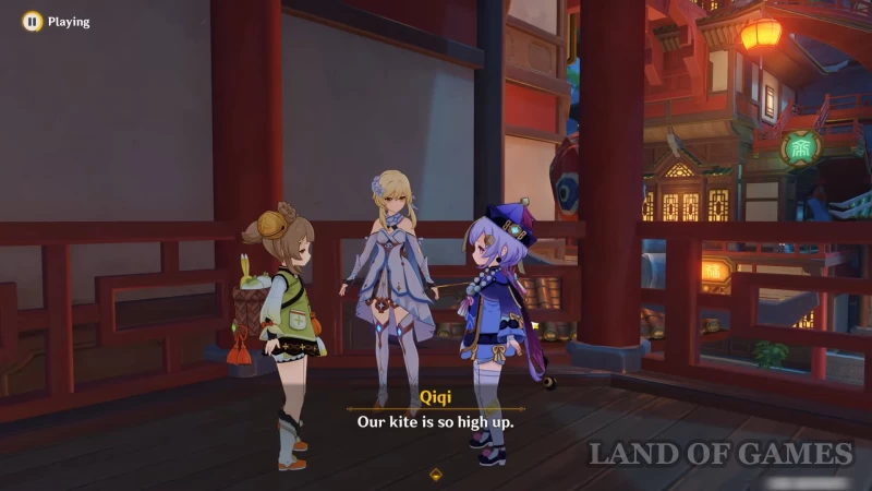 Бегите ко входу в порт и там сможете пообщаться с самым известным репортером Фонтейна. Неподалеку от нее расположена лавка с воздушными змеями. Девушка много расскажет о празднике, а также поведает вам, что Кэ Цин посвятила ей стих.