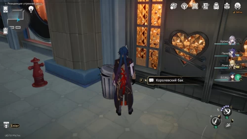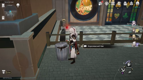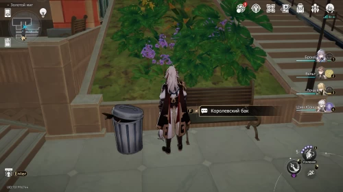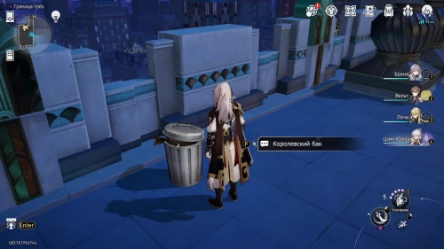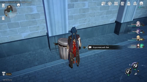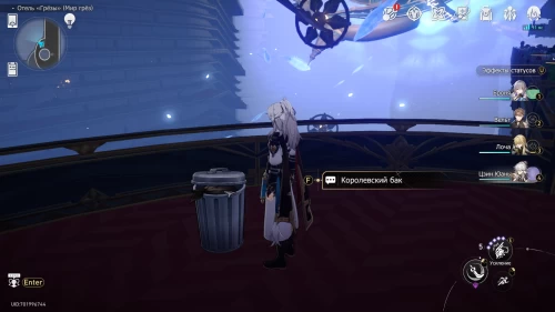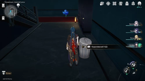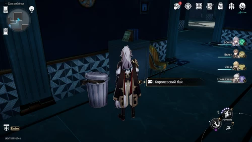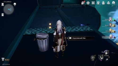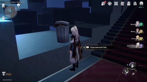 Проще всего попасть к нему можно, спустившись из бара отеля. Если вы не открыли там телепорт, то вам поможет наш гайд по головоломкам ходики Мира грез. Там мы подробно рассмотрели маршрут. Оказавшись на лестнице, ведущей на третий уровень, вы как раз столкнетесь с урной. Стоит отметить, что это единственный Королевский бак, который не будет рассматривать возможность мирного разговора. Чтобы забрать его награду, вам придется вступить в бой и пробить его уязвимость.