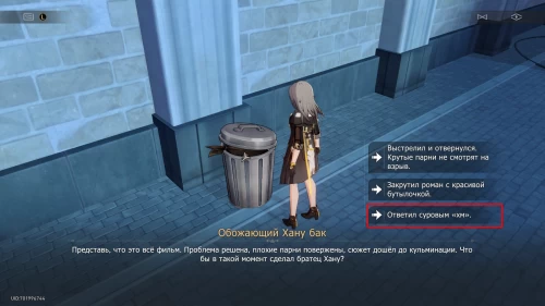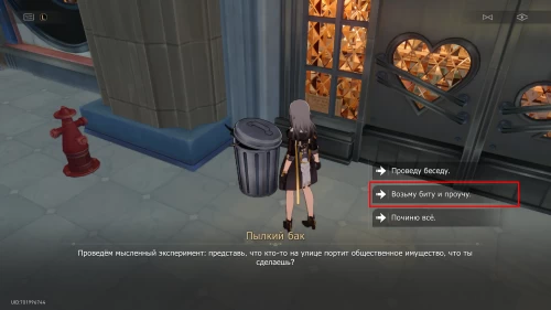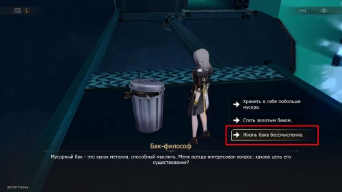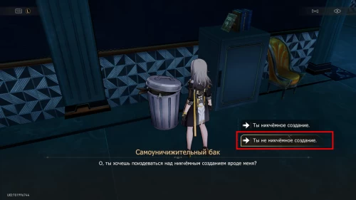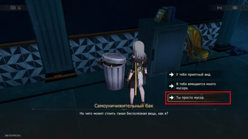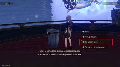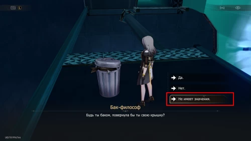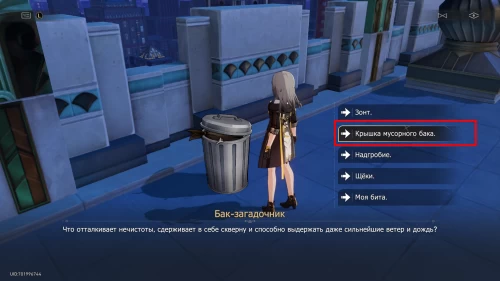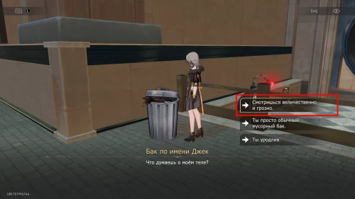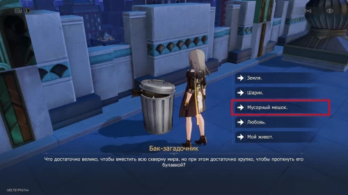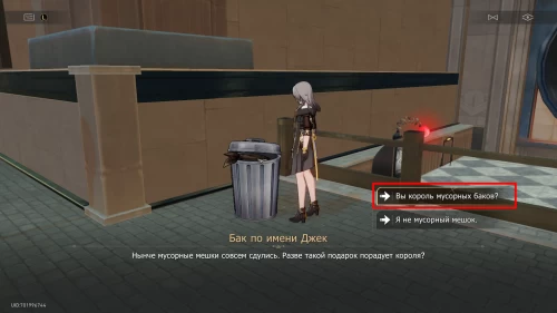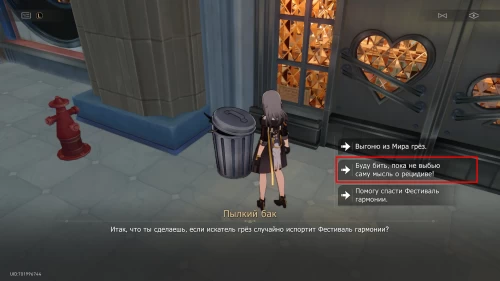 - Если вы ошиблись, то, когда диалог прервется, можете немедленно отбежать от бака подальше, чтобы избежать его атаки. Тогда состояние урны сбросится к первоначальному, а вы сможете попробовать найти правильные ответы еще раз.