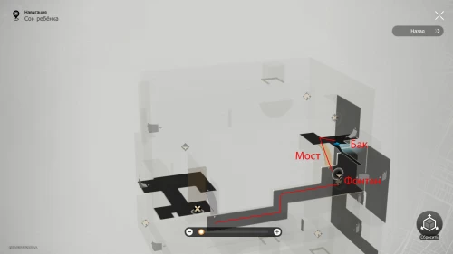 Когда вы перейдете на следующую платформу, на противоположном ее конце вас будет ждать фонтан. С помощью пузырей оттуда воссоздайте мост слева от конструкции. Как только вы попадете на новый уровень, сразу же справа увидите нужный бак. Вы составите ему компанию в обсуждении вопросов, связанных со смыслом жизни.