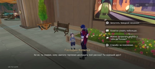 Далее перенеситесь в парк Айдена в западной части Золотого мига. От телепорта пройдите немного на северо-восток. Рядом с клумбой найдите сборщика сертификатов господина Копилку. Если при первой встрече с ним вы согласились послушать рассказ обо всех его сертификатах, он позволит вам потрогать его клубок.