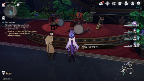 Находясь во всем том же VIP-зале, пройдите в его юго-восточную часть и приблизьтесь к музыкальным инструментам, стоящим на сцене. Нажмите на кнопку «Осмотреть»