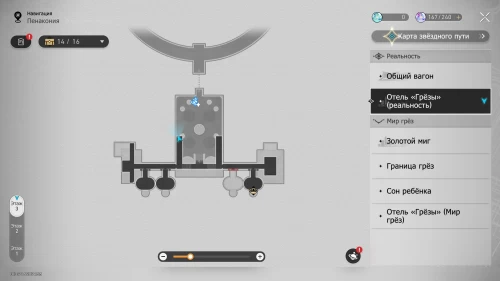 Телепортируйтесь к якорю «VIP-зал», расположенному на 2-м этаже Отеля «Грезы» (реальность), а затем развернитесь и подойдите к багажу с правой стороны возле стены. Здесь вы неожиданно обнаружите куклу Пом-Пом, выделенную искоркой, – взаимодействуйте с ней. Затем ткните ее, чтобы появился пепеши.