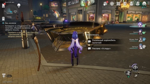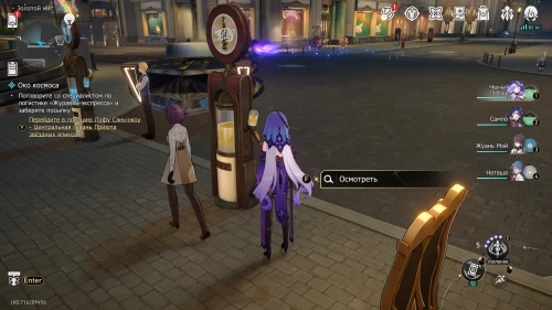 Переместитесь к телепорту «Вход в отель Грезы», расположенному на 2-м этаже Золотого мига, а потом пройдите немного вперед, спуститесь по ступенькам и подойдите к заправочной станции слева, установленной рядом с парковкой. Далее нажмите на кнопку «Осмотреть»