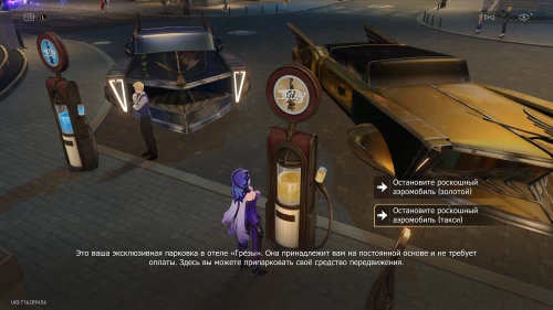 Вы узнаете, что это ваше парковочное место, и вы можете разместить здесь купленное авто. Выберите из списка машину, которая не является такси. Затем подойдите к ней и кликните по кнопке с иконкой диалога, чтобы «побеседовать» с аэромобилем. Сразу после завершения разговора, у вас откроется нужный трофей, за который дают 5 звездных нефритов.