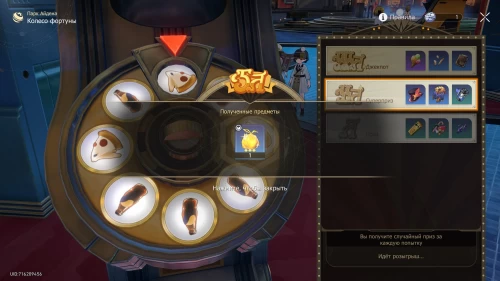 Купив нужную вещицу, откройте инвентарь, перейдите в раздел «Расходные предметы» и используйте «Все или ничего». Теперь переместитесь к якорю «Парк Айдена» и бегите на юго-восток к игровым автоматам. Подойдите к Колесу фортуны (продемонстрирован на скриншотах ниже) и начните играть в него. Напомним, что для одной крутки вам потребуется 1 жетон Айдена.