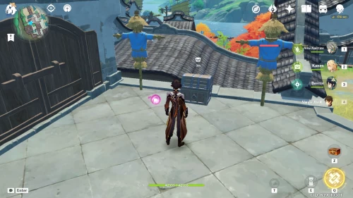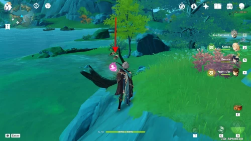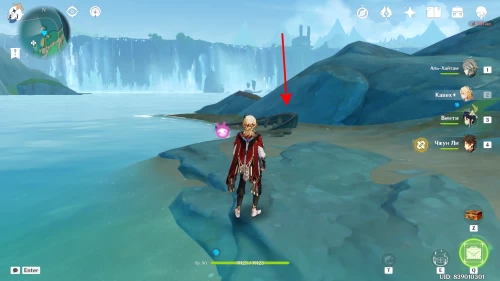 Идите на побережье к юго-западу от арены с Суаньни-отшельником. Там вы увидите три пиро цветка. Заденьте каждый из них, чтобы появились слаймы. Когда вы разберетесь с ними, появится сундук.