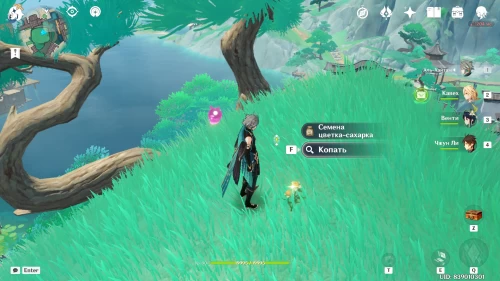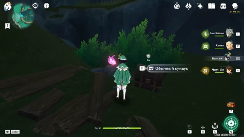 Его вы найдете на берегу реки. Вскопайте ямку, около которой сидят два хиличурла, чтобы получить обыкновенный сундук.
