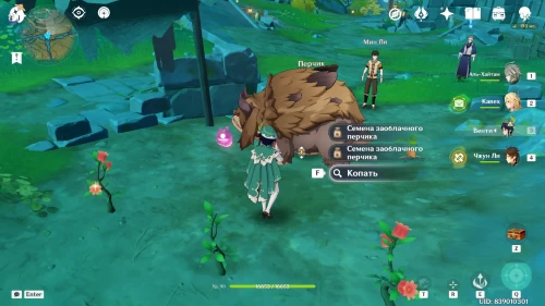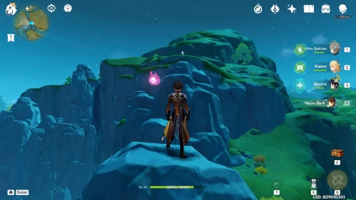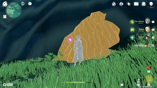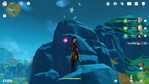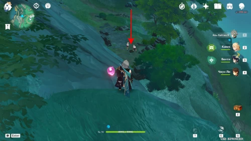 От телепорта на вершине горы Линмэн спуститесь вниз по тропинке. В указанном месте вы встретите гео слаймов. Если их нет, то подойдите ближе к скоплениям руды, чтобы появились эти существа. Разберитесь с ними, чтобы материализовались сокровища.