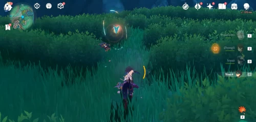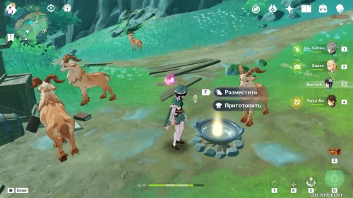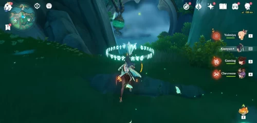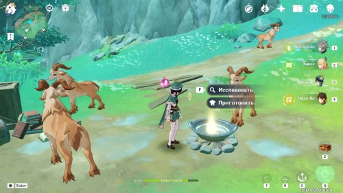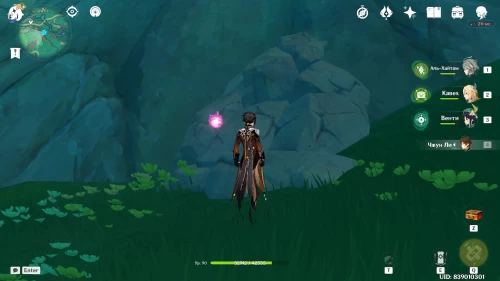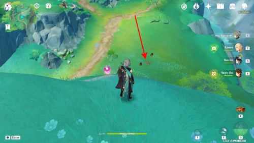 На западном склоне горы Минъюань вы увидите горную козу, обнюхивающую камни. Осмотрите их. После этого появятся анемо слаймы. Уничтожьте их. Лопните следующую волну с помощью пиро бочки. Взорвать третью группу вы сможете, переместившись в жемчужный портал. Награда – богатый сундук.