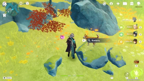 Вскопайте землю на участке, где стоит вьючный як по имени Перчик, чтобы достать сокровище.