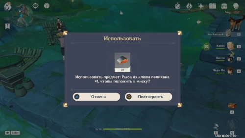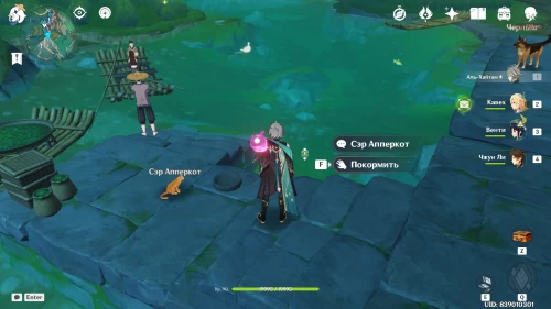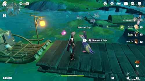 Отправляйтесь на пристань около деревни Цяоин. Там вы увидите пеликана по имени Великий Вор. Взаимодействуйте с ним.
