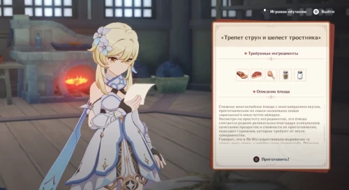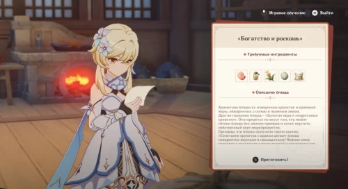 Итак, вам нужно будет порадовать фонтейнцев вкусной едой. Подойдите к плите и примитесь за готовку, которая будет состоять из трех этапов. К счастью, ингредиенты для блюда искать не придется.