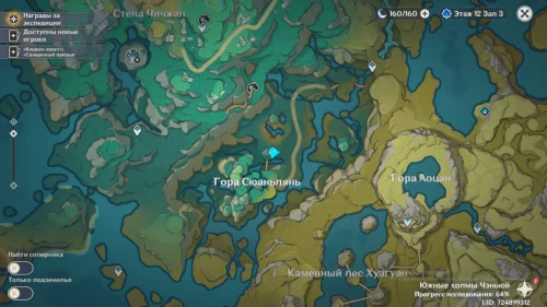 Телепортируйтесь на гору Сюаньлянь и повернитесь на юг. Используйте прыжки карпа, чтобы попасть на одинокий парящий в воздухе островок с пластинкой.