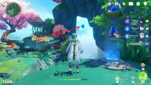 Отправляйтесь в покои Карпа — эта локация открывается после прохождения задания «Застланный облаками путь к Обители Чиван». К юго-западу от Заветного нефрита есть небольшое каменное строение, на котором лежит кристалл.
