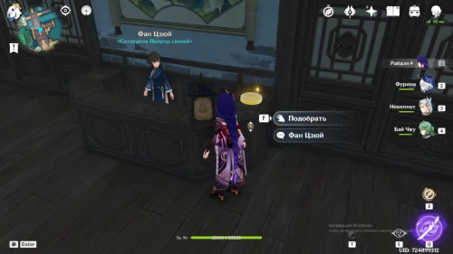Поднимитесь по лестницам на верхний этаж здания и подойдите к Фан Цзюй — на ее столе лежит кристалл.