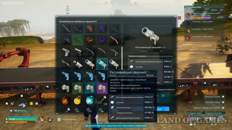Кроме того, необходимо, чтобы на базе были Палы, способные сажать, поливать и собирать растения.