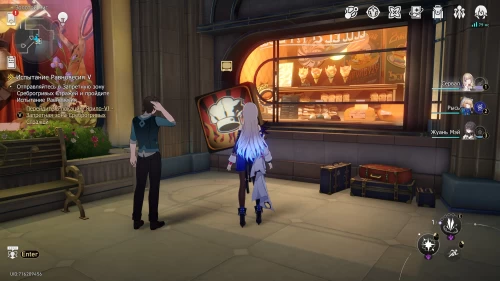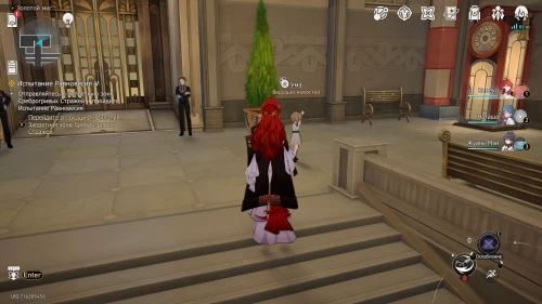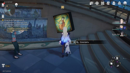 Теперь переместитесь к пространственному якорю «Площадь Часика» на первом этаже Золотого мига и поднимитесь по лестнице впереди. Затем сверните вправо, взберитесь по ступенькам чуть выше и поверните налево. На верхней площадке вы обнаружите ведущую новостей Уму, с которой вам необходимо будет пообщаться.