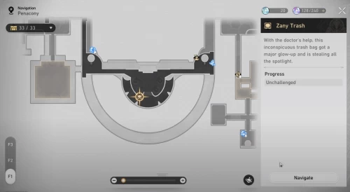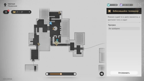 Поговорив с телеведущей, переместитесь к якорю «Вестибюль отеля Грезы» и двигайтесь на запад к иконке телевизора, подписанной как «Странный мусор». Подойдите к парящему в воздухе TV и осмотрите его для открытия первого боевого испытания.