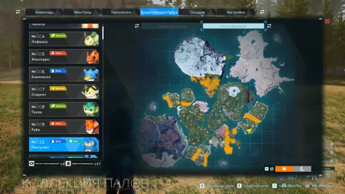 Раньше всего на вашем пути повстречаются Диноссумы. На карте ниже отмечены места обитания данных Палов, которые располагаются ближе всего к стартовой локации.