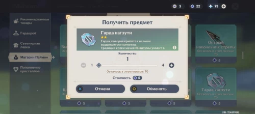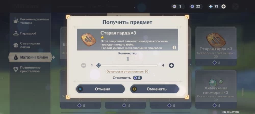 Купить гарды тоже можно в магазине Паймон: 3 старые гарды за 5 единиц пыли, 1 гарду кагэути за 5 единиц, 3 прославленных гарды за 2 единицы Звездного блеска.