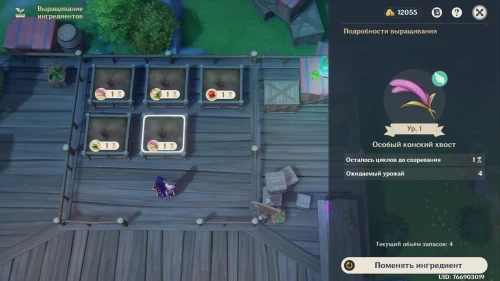 Первым делом пообщайтесь с Фредой и купите у нее Расширение области культивации II за 5 тысяч монеток. Отправляйтесь к зоне выращивания и соберите урожай, а затем посадите на двух грядках конский хвост (ловкость) и цветок цинсинь (мудрость), так как в следующем цикле вам пригодятся оба эти параметра (рекомендуем убрать грибы).