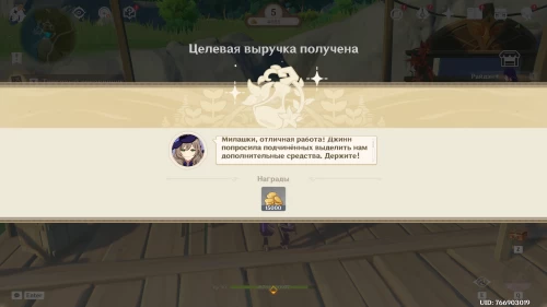 В конце подойдите к Лизе и завершите торговый цикл. Наверняка вы заработаете больше 300 тысяч монет. Плюс, Син Цю подарит вам 50000 средств. Если вы достигните целевой выручки, то получите от Лизы еще 400 тысяч монеток.