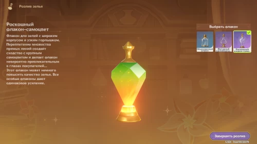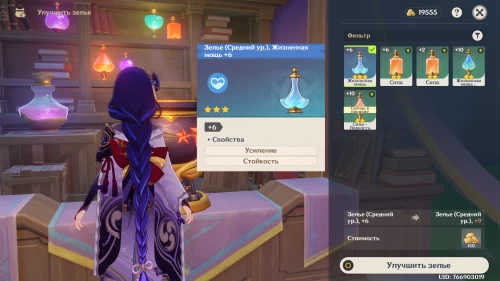 Примечание: Отметим, что для создания экспертного зелья вам обязательно потребуется Улучшенный алхимический котел IV и полностью открыть все усиления из категории «Эффективность трансмутации». Нужно использовать фиолетовые и синие ингредиенты, а также дорогие флаконы и украшения к ним.