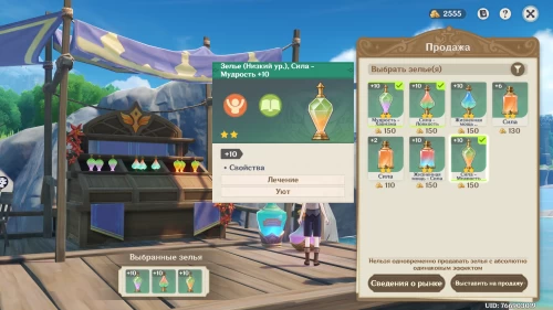 Снова бегите к прилавку и выставите полученное зелье. В продаже обязательно должен быть также эликсир на Мудрость, сваренный нами ранее. Завершите цикл и подсчитайте полученную прибыль. Если вы следовали нашим инструкциями, то должны будете получить 13-15 тысяч средств.