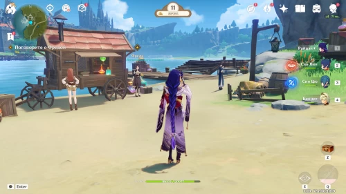 Судя по всему, успех магазина смог привлечь торговцев из других королевств. Вам нужно будет пообщаться с ними. Для начала подождите 2 дня через меню Паймон, а затем возвратитесь в свой магазин. Сразу после этого начнется кат-сцена. Далее поболтайте с торговцем Атефой, стоящей за прилавком.