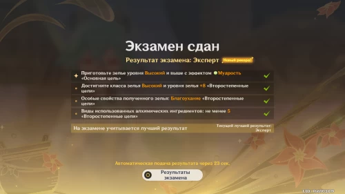 Путешественнику и Паймон удалось добиться невероятных успехов в создании и реализации эликсиров, поэтому они решают отпраздновать это событие. Подробное прохождение квеста представлено в нашем отдельном гайде. В награду за его выполнение вы получите 30 примогемов, 20 тысяч моры, предмет декора «Искусный котел: Изобилие зелий», 2 опыта искателя приключений и 2 опыта странника.