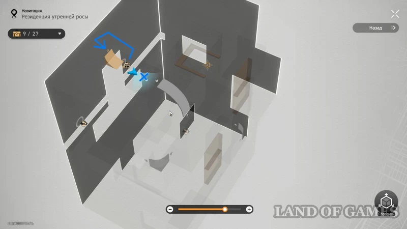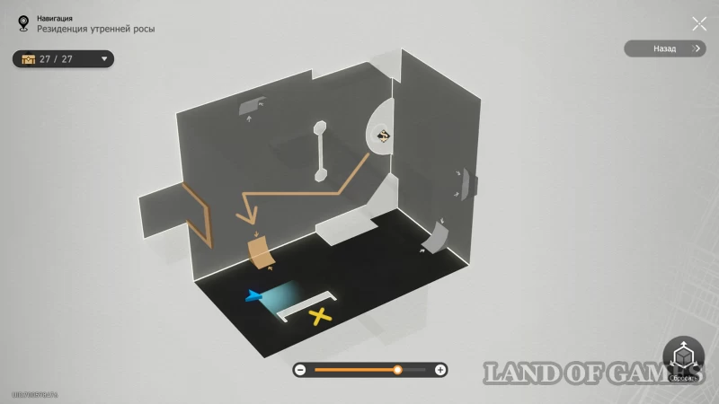 Перейдем к исследованию второй 3D-области, в которую можно попасть через коридор верхнего этажа на западной половине комнаты с Диорамой: здесь есть 3 обычных, 2 ценных и 2 роскошных трофея.
