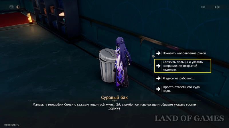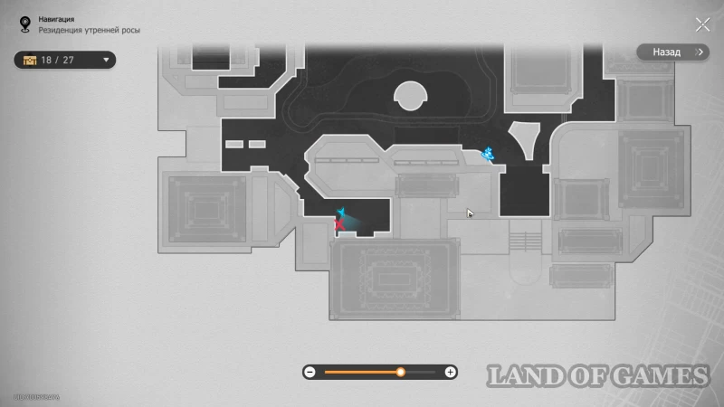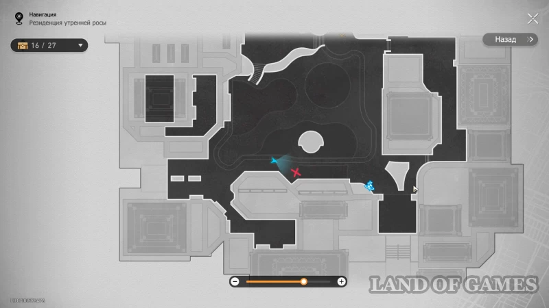 Вернитесь к якорю в зале с Диорамой и следуйте к лестнице на верхний ярус в западной половине Резиденции: под лестницей стоит Суровая мусорка (по квесту с Рацио и Авантюрином ее тут нет).