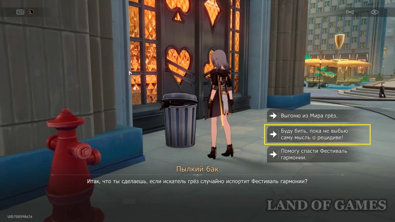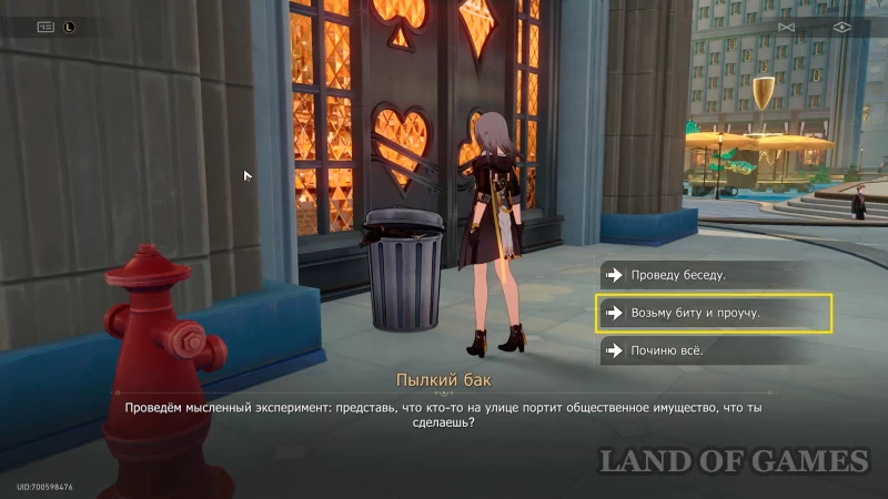 От прошлого места разверните камеру на север: перед дверью с карточными мастями стоит Пылкая Мусорка (в квесте с Авантюрином ее не будет).
